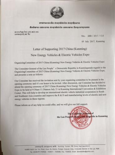 老挝人民民主共和国驻昆明总领事馆函件