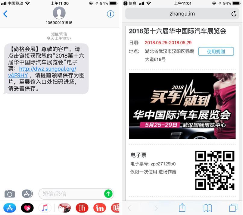进入官方微信“华中国际车展”,点击菜单(点击可直接抢票)【免费索票】进入页面提交信息即可,索票成功后组委会客服人员将会与您核对信息,并为您发送车展电子门票,短信接收后打开链接查看电子票。