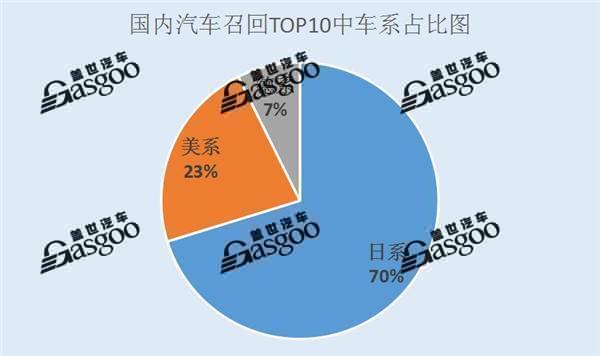 从排行榜中可以看出,前十名中日系车就占了70%,美系车占23%,德系车占7%。主要受到高田气囊影响,由此可见,高田“死亡气囊”引起的蝴蝶效应很大,自召回事件发生以来,已在全球市场召回受影响车辆超过6000万辆,截至2016年12月25日,包括东风本田、广汽本田、华晨宝马、天津一汽丰田等在内的21家国内生产企业已向质检总局备案了召回计划,并向社会发布了召回信息,涉及车辆共计964.66万辆。