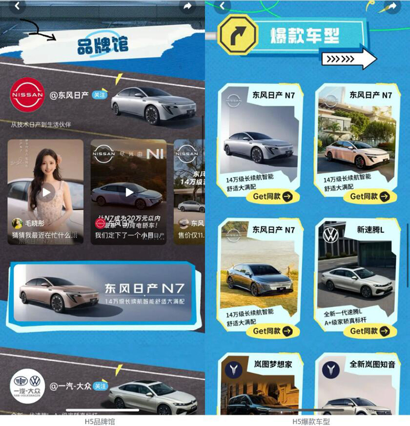 大曝光、大声量之外,“DOUCAR城市派对”也为品牌构建了 “流量 - 内容 - 转化” 闭环,让车展流量切实为生意服务。活动H5主会场中,品牌馆直连品牌直播间,沉浸式互动强化品牌认知,爆款车型展示区,一键跳转线索落地页,精准承接流量并锁定潜在客群,破解车展 “只赚声量难落转化” 痛点,实现品牌声量与销售线索双增长。